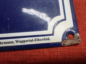 DEEPLY CONVEX ENAMEL ON STEEL WALL SIGN, 497 BY 392 MM. SOME RUST TOT HE BACK,, OTHERWISE EXCELLENT WITH ONLY CHIPS TO THE SCREW HOLES.