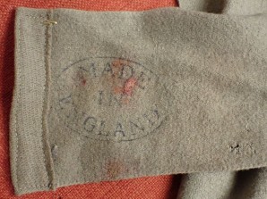 LIGHT KAHKI PUTTY WITH FOX MAKER LABEL AND BRASS FOX TAB. COUPLE OF SMALL MOTH NIPS. NO RIPS.